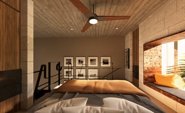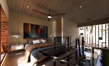 53 metros cuadrados con doble planta, mezanine y mucho luz natural que crea un ambiente cálido y amplio.