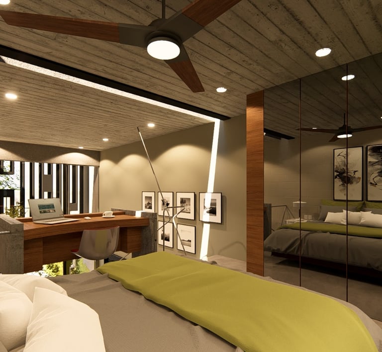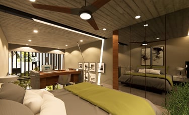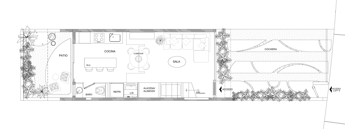 64 metros cuadrados con doble planta, mezanine y mucho luz natural que crea un ambiente cálido y amplio.